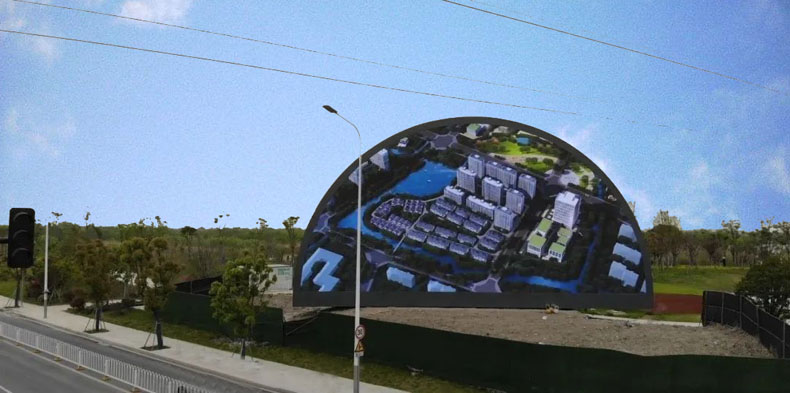 由湖州南太湖控股集團有限公司建造的湖州首個異形LED顯示屏正式點亮。該顯示屏位于湖山大道與三環(huán)北路交叉口,高13米,寬24米,屏面積約250㎡,為湖州市首個半圓異形大屏。