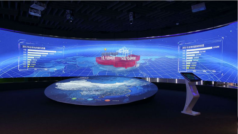 新能源和可再生能源發(fā)電可以用弧形大屏幕,觀眾就位后,顯示屏?xí)詣痈袘?yīng)并播放風(fēng)力發(fā)電、地?zé)岚l(fā)電、太陽能發(fā)電、海洋能發(fā)電等知識,以及輸電與配電的變電站、送電線路、高壓直流輸電(HVDC)等知識。家電小常識及節(jié)能小竅門可以用弧形大屏幕技術(shù)與觸摸屏來介紹,大屏幕出現(xiàn)一系列家用電器讓觀眾通過觸摸屏選擇并回答。