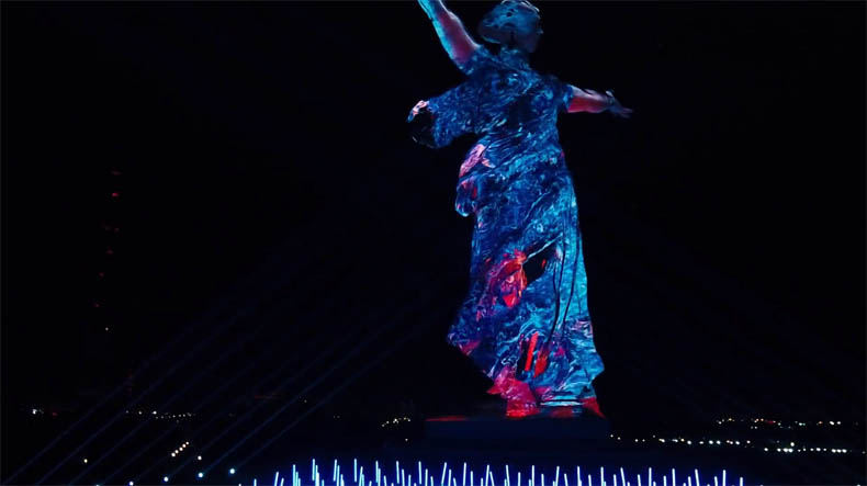 “母親”雕像矗立在伏爾加格勒的馬馬耶夫崗上,高 52 米,右手舉著一把長 33 米的利劍,左手呈現(xiàn)召喚姿勢,昂首挺胸,氣勢恢宏。16 臺亮度為 45,000 流明的 Christie D4K40-RGB 純激光投影機圖像映射到這座 85 米高的雕塑上。D4K40-RGB 配備 Christie TruLife 電子平臺和 Christie RealLaser 照明系統(tǒng),這使得雕像能顯現(xiàn) 90% 以上的 Rec.2020 色域,并呈現(xiàn)出充滿活力、色彩豐富、栩栩如生的圖像。