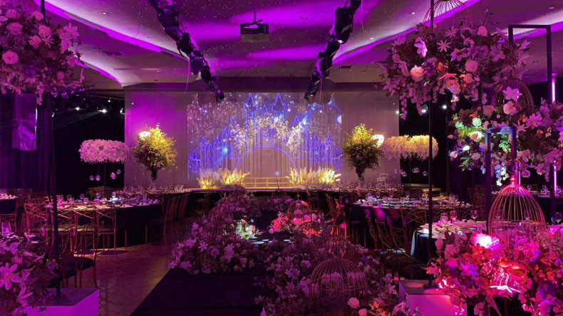 為了打造美輪美奐的婚禮場地,給新人一個滿意的婚禮殿堂,西南某婚慶公司從投影機的品質、亮度、色彩、功能配置以及價格等多方面進行綜合考慮,最終選擇理光激光工程投影機PJ LU10000、PJ LU9090、PJ RL800U及PJ LU5018四款型號,共計26臺設備,應用于多個宴廳和婚慶項目。