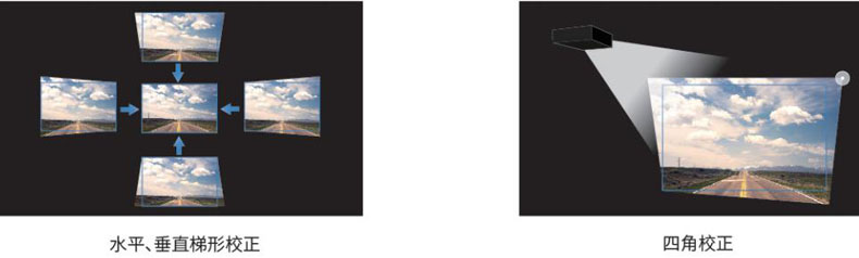 水平、垂直梯形校正/四角校正
