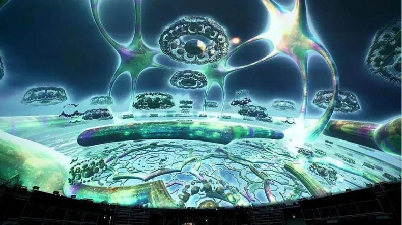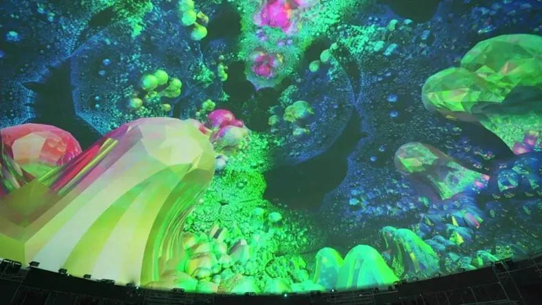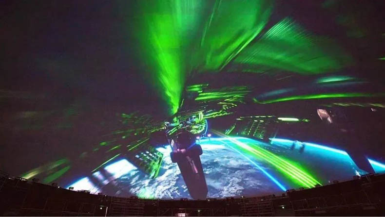 光影視界是典型的球幕系統(tǒng),其半球形銀幕宛如可以容納浩瀚蒼穹一般,將觀眾的視角全部“禁錮”在銀幕畫(huà)面之中,使得觀眾目光所到之處幾乎全部是栩栩如生、絢麗多彩的逼真畫(huà)面。