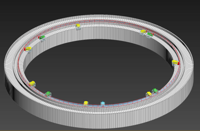 采用“7+4+1”的投射方式——球幕的頂部使用1臺(tái)投影機(jī)進(jìn)行投射,第二層使用4臺(tái)投影機(jī),依此類推。單臺(tái)投影面積約為180平方米,剛好可以把屏幕鋪滿,一方面節(jié)約了成本,同時(shí)也保證了項(xiàng)目的效果。