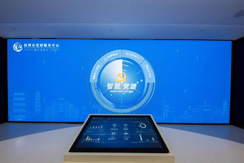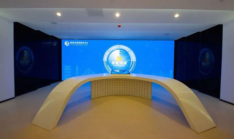 通過電動感應(yīng)門進入場館,通過智慧平臺實現(xiàn)指揮調(diào)度、黨群服務(wù)、黨建展示、云上直播等四大功能,智慧黨建系統(tǒng)與智慧城市系統(tǒng)、公共視頻監(jiān)控系統(tǒng)相連接,對城市治理問題統(tǒng)一指揮,統(tǒng)一調(diào)度;可對智慧農(nóng)村、智慧社區(qū)、梧州黨建網(wǎng)、西江黨群紅等信息服務(wù)平臺統(tǒng)一管理、統(tǒng)一維護;分析全市黨組織數(shù)及黨員數(shù),展示各單位黨建工作亮點、黨史教育基地紅色資源分布圖等;這里還探索建立了與基層黨組織相連接的智能視頻系統(tǒng),會議、黨課等同步與基層黨組織進行視頻連接。