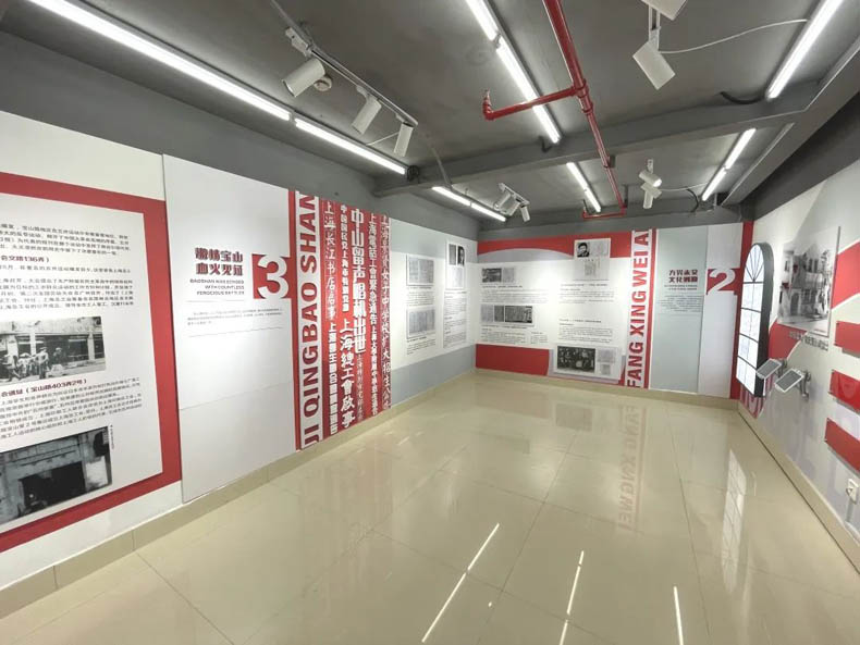 體驗(yàn)館一樓展廳以“紅色文化基因溯源”主題貫穿始終,以歷史時(shí)間為敘事縱軸,通過虛擬成像等新媒體技術(shù),展現(xiàn)了中共創(chuàng)建時(shí)期和大革命時(shí)期寶山路在新文化運(yùn)動(dòng)與工人運(yùn)動(dòng)中發(fā)揮的重要作用。
